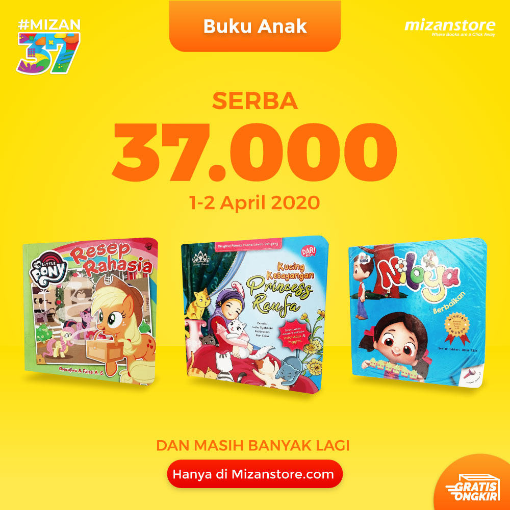 Berbagai buku anak bestseller dari penerbit unggulan Mizan, seperti Pelangi Mizan, Dar Mizan, Bentang Kids, dan Noura Kids ikut serta dalam promo serba Rp37.000 ini.