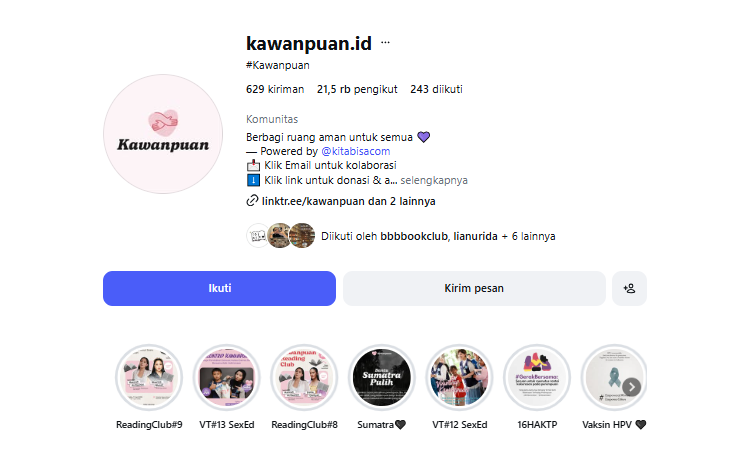 - Edukasi Konten Literasi: Melalui kanal media sosial, mereka rutin membagikan rekomendasi buku lintas genre dan info ekosistem literasi guna memperluas perspektif hidup perempuan.