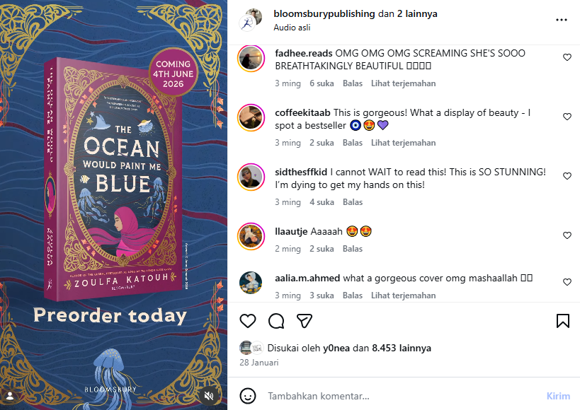 Setelah sukses besar mengaduk-aduk emosi pembaca lewat debutnya yang fenomenal, As Long as the Lemon Trees Grow, Zoulfa Katouh, kembali membawa kabar gembira. Ia segera merilis buku keduanya yang sangat dinantikan, berjudul The Ocean Would Paint Me Blue.